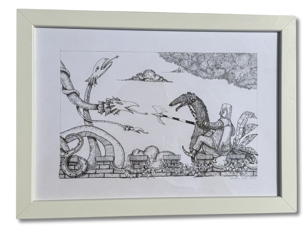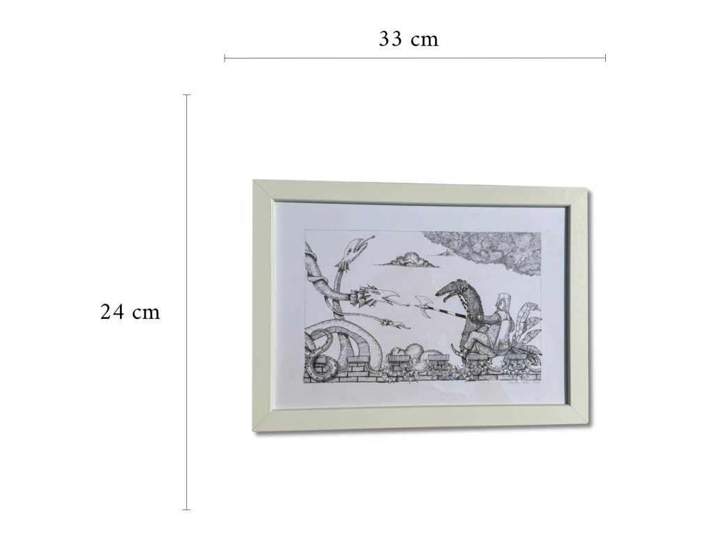 Pohádkový motiv rytíře bojujícího s vícehlavou saní. Vhodné do dětského pokojíku.