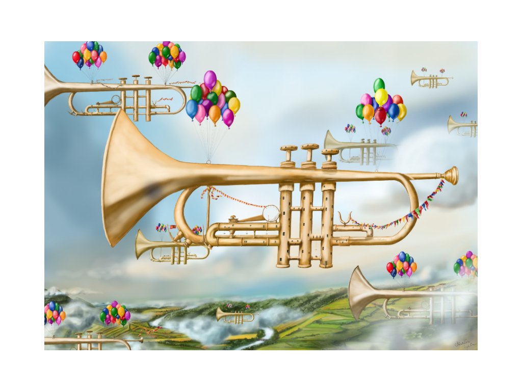 Hlavy vzhůru trubky letí tóny prší z oblaků.