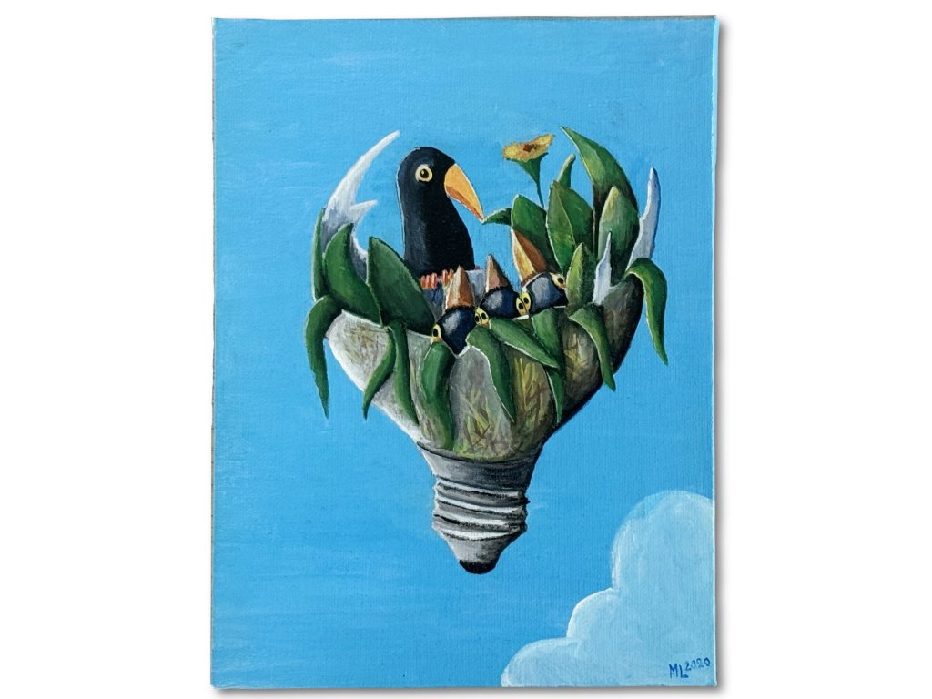 Obrázek je originál v počtu pouze 1 kusu. Je malován akrylovými barvami na plátno a ošetřen závěrečným lakem. Rozměry 18 x 24 cm.