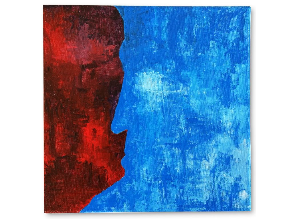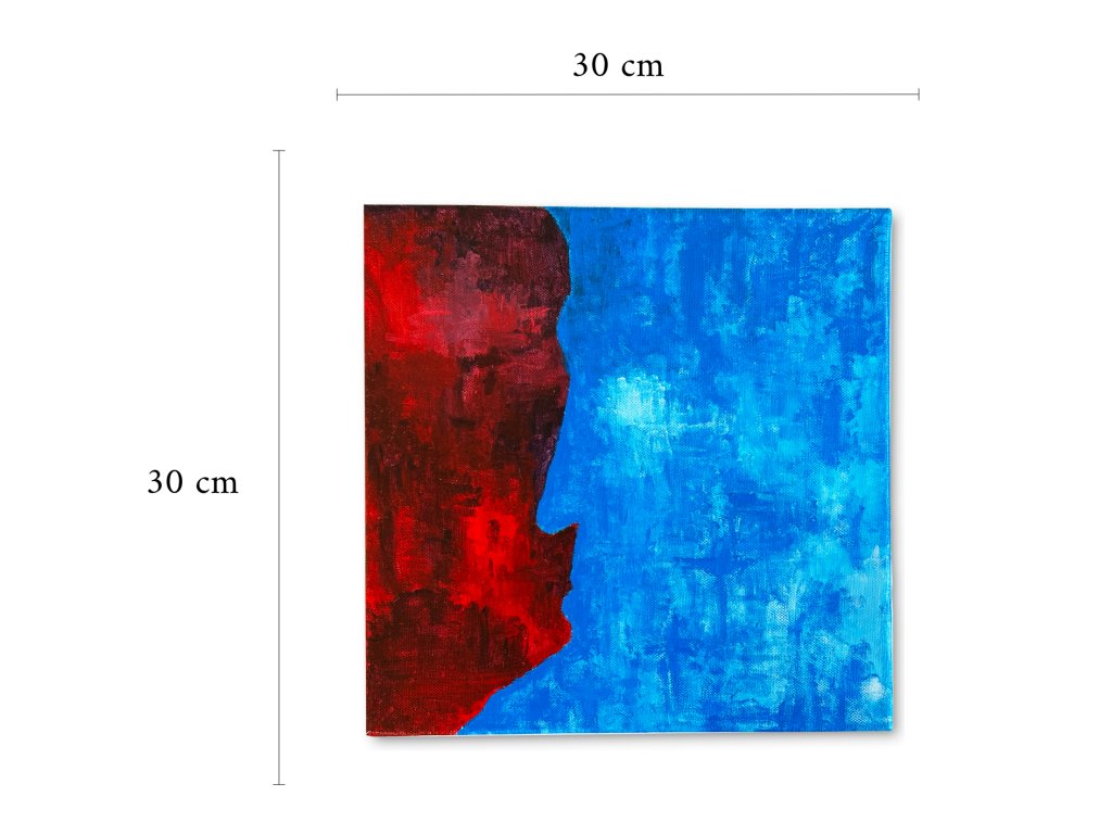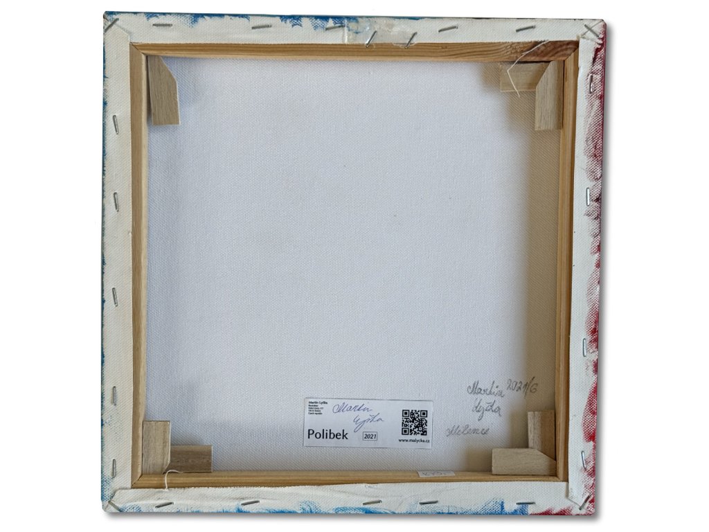 Rozměry 30 x 30 cm. Malováno akrylem na plátno natažené na dřevěný rám.