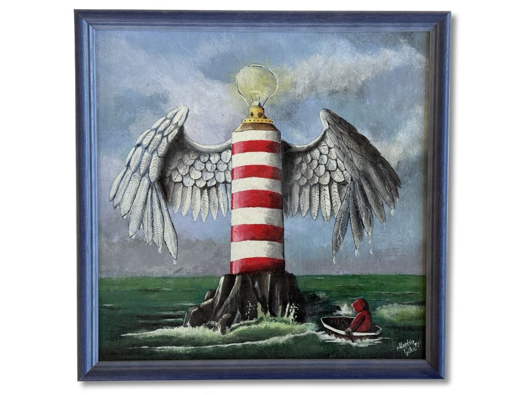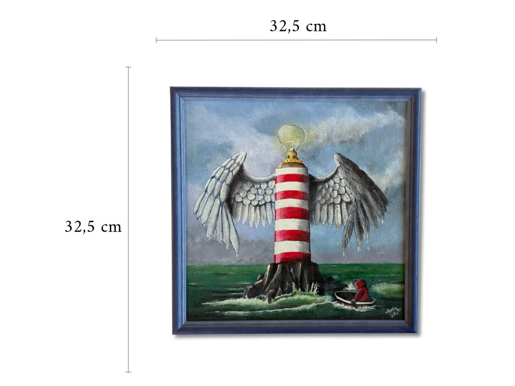 Rámováno v profilovaném rámu barvy moře jenž ladí k obrazu.