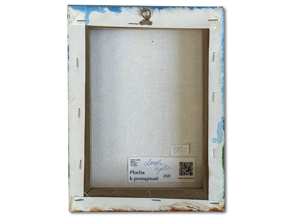 Akryl na plátně ošetřeny závěrečným lakem. Na zadní straně očko pro zavěšení. Rozměry 18 x 24 cm
