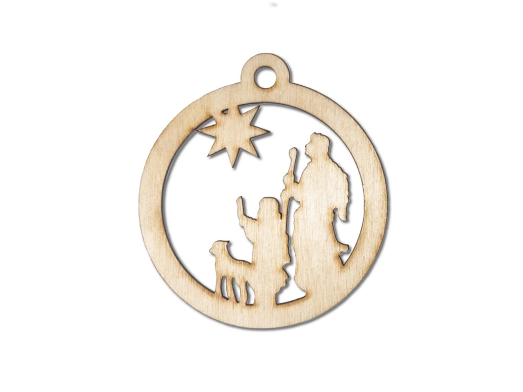 Dřevěná ozdoba na vánoční stromeček s motivem Pastýřů