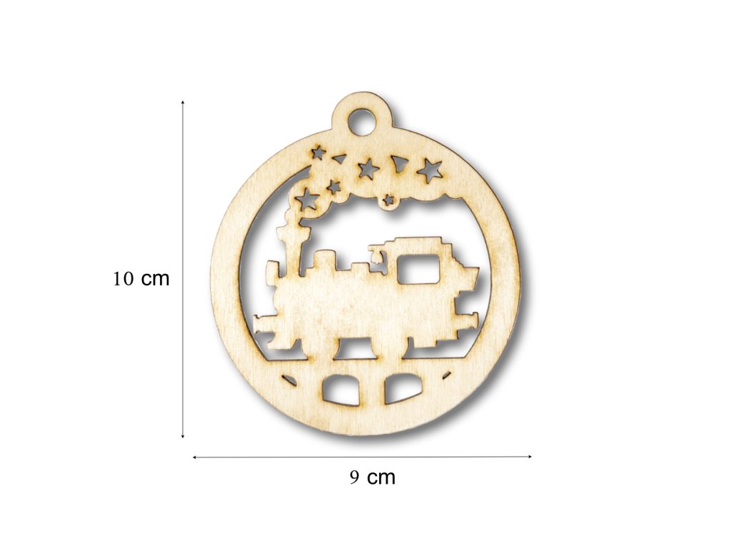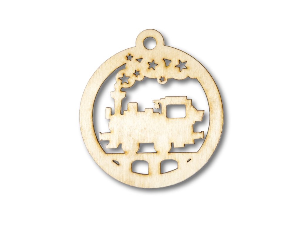 Dřevěná ozdoba na vánoční stromeček s motivem parní mašinky
